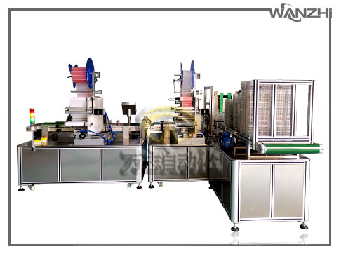 啟動自動—>輸送啟動—>將(jiāng)產品放在輸送上(或連接(jiē)前端(duān)生產線) —>測物傳感器檢測到產品(pǐn)—>攔停產(chǎn)品(pǐn)—>牽引電機啟動出標—>海綿條貼覆在產品上—>貼標完成—>攔停定位氣缸退(tuì)回—>輸送啟動—>攔停產品—>2#標頭貼海綿(mián)—>自動收料—>推出推疊產品到緩存輸送帶。