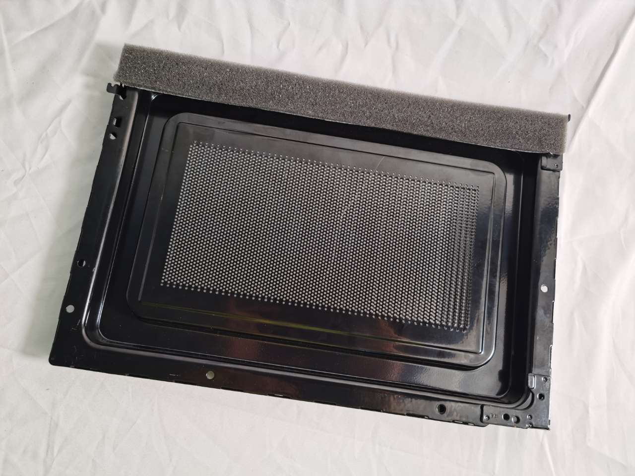 本設備專門設計,具有(yǒu)專一(yī)性,專用於家用電器微波爐門體附件貼合保(bǎo)護膜及防撞海(hǎi)綿墊條。