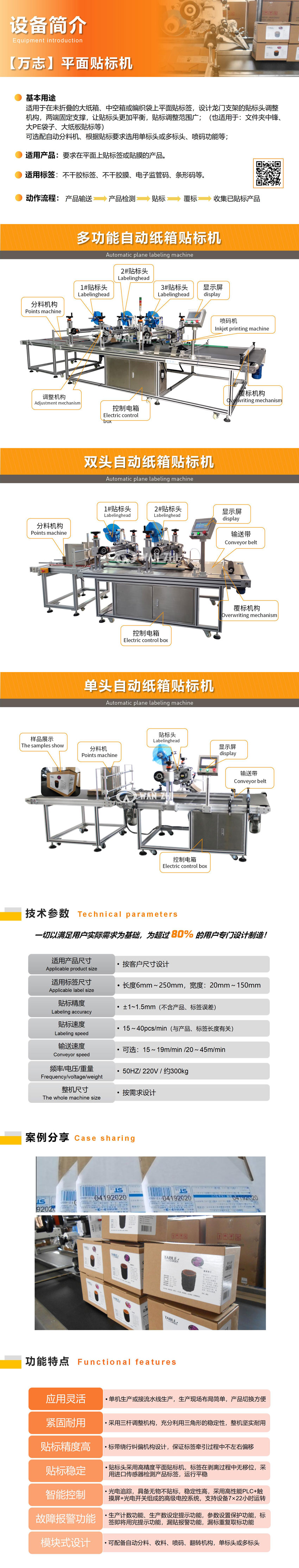 全自動紙箱貼標機適用於在(zài)未折(shé)疊的(de)大紙箱、中空箱或編織袋上(shàng)平麵貼不幹(gàn)膠標簽,設計龍門支架的貼標頭調整機構,兩端固定支撐,讓(ràng)貼標頭更加平衡,貼標調整範圍廣,最大範圍到寬度為800mm紙(zhǐ)箱;可根據貼標要(yào)求做單標頭(tóu)、雙標頭或多標頭;可根據用(yòng)戶需求配備自動分料機構、收料機構、翻轉機構。(可同時應(yīng)用於:文件夾中鋒貼標、大PE袋子(zǐ)貼標、大紙板貼標等)。