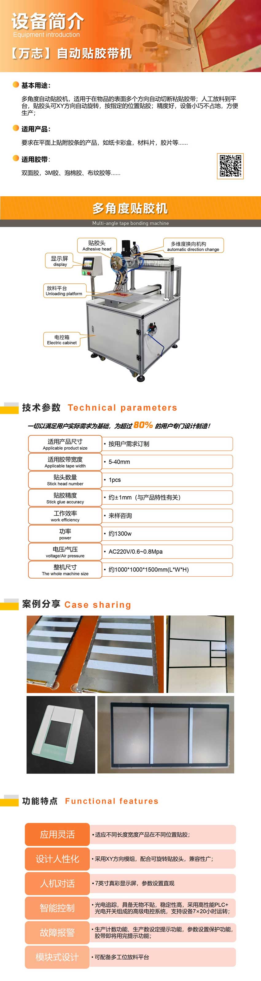 自動貼膠機,適用(yòng)於在物品的表麵多個(gè)方向自動(dòng)切(qiē)斷粘貼膠帶;人工放料到平台,貼膠頭可XY方向自動旋轉,按指定的位置貼膠;精度好,設備小巧不占地,方便生產;