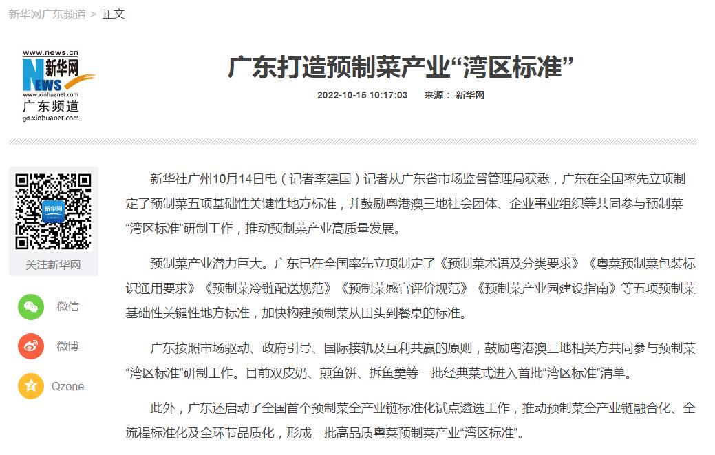 圖1:《廣東打造預製菜產業(yè)“灣(wān)區標準”》新聞報道來源