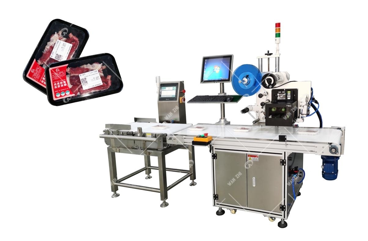 適應於不同高度(厚度)的包裝盒/袋自(zì)動稱重貼標(biāo), 前端可連接包裝機、包膜機,稱重(chóng)後(hòu)信(xìn)息即時傳輸到打印係統生成內容後在對應的產品或包(bāo)裝上實時貼標,采用(yòng)先(xiān)進無(wú)接觸吹貼式貼標(biāo),一分鍾最高可貼(tiē)50Psc,打印模板可編輯,方便生(shēng)產管(guǎn)理信息溯源(yuán),實現流(liú)水線無人化作業。